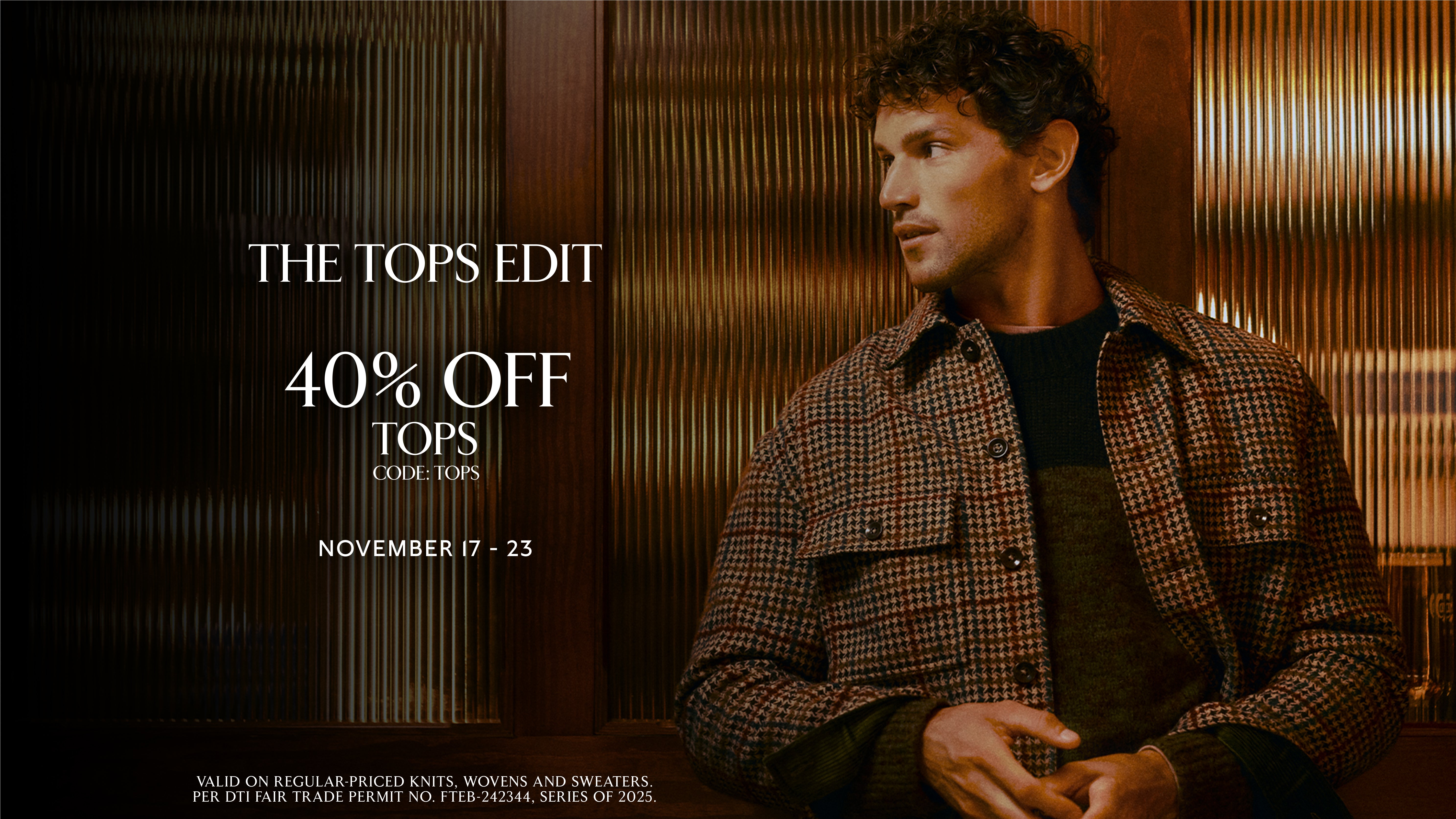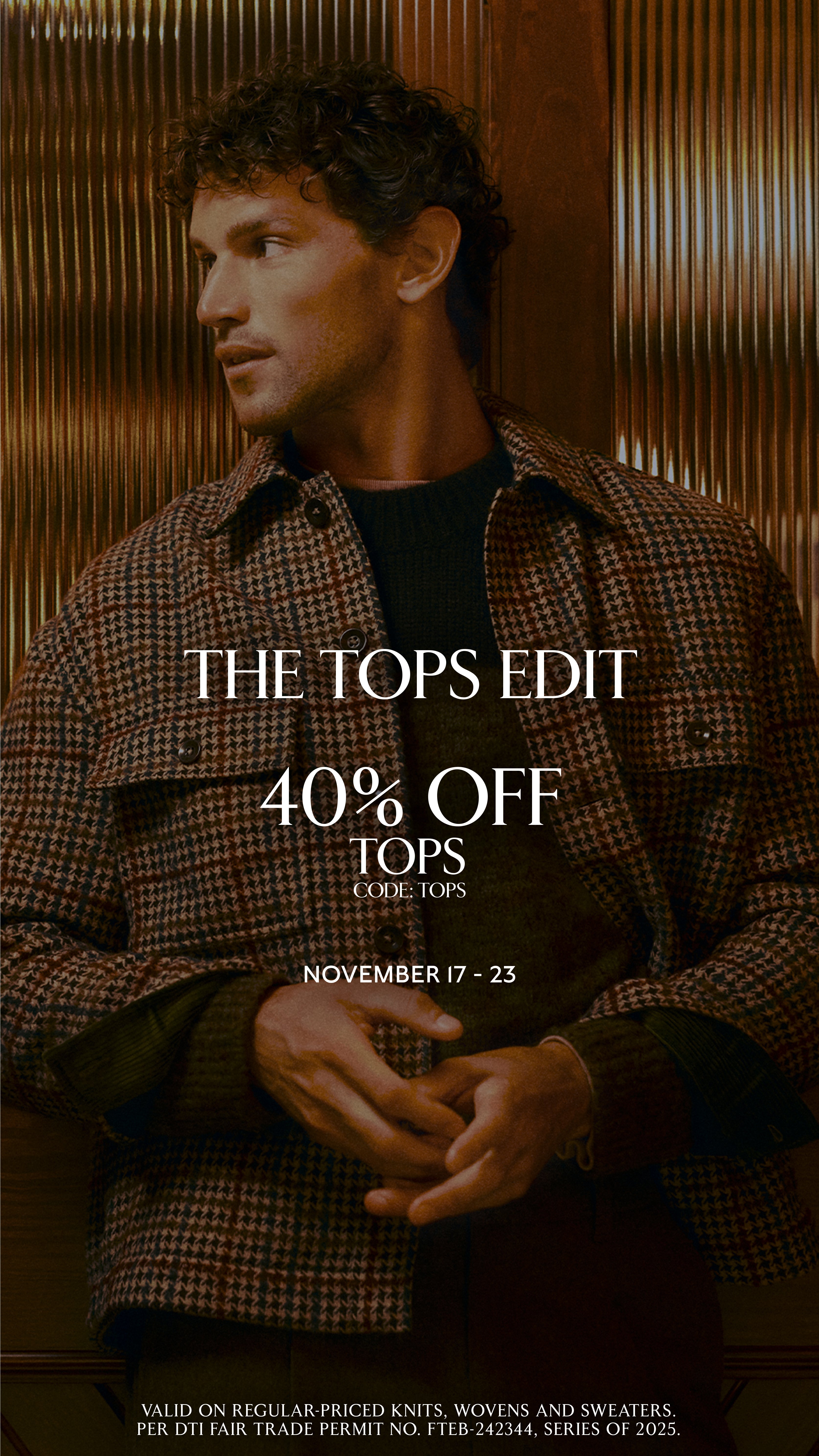 - Enjoy 40% off regular-priced Tops (Knits, Wovens, Sweaters)