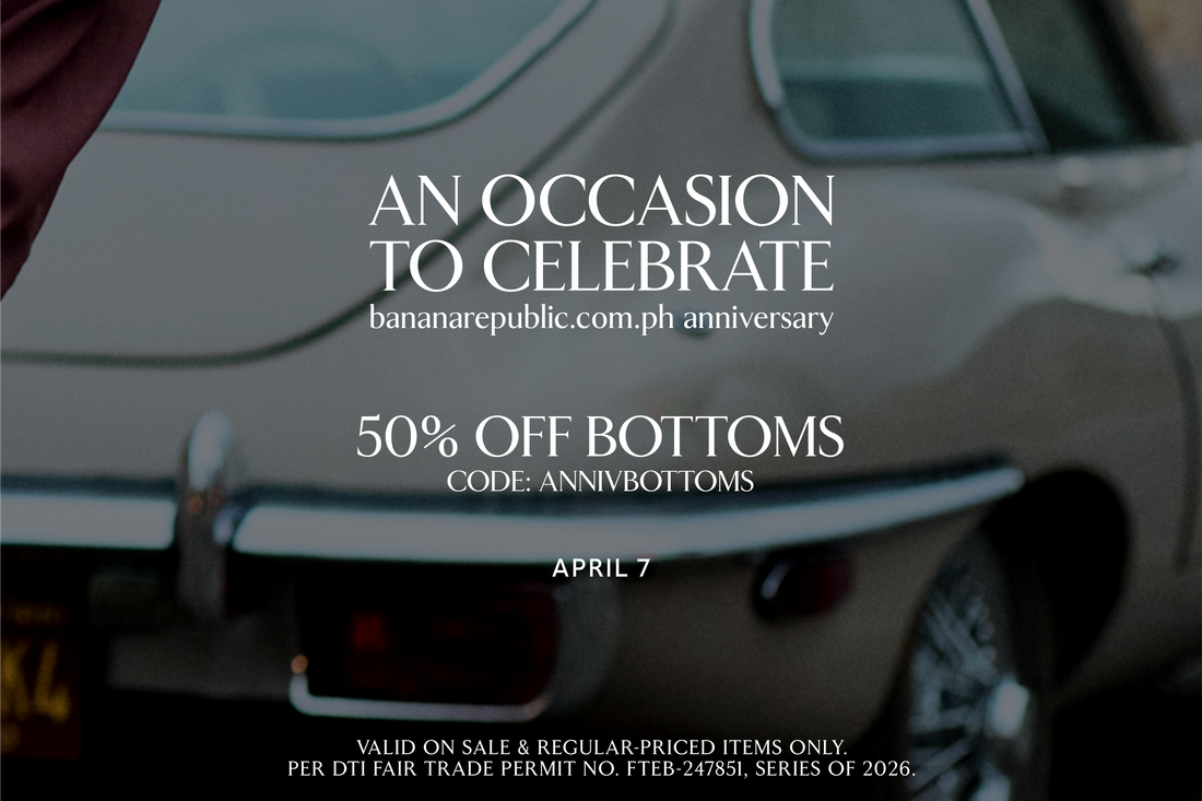 -Enjoy 50% off all Bottoms -Code: ANNIVBOTTOMS -Discounted prices will be reflected upon checkout. -Offer is not combinable with other promotions or discount codes. -Valid on sale and regular-priced Bottoms only. -One (1) discount code per transaction. -Valid on April 7, 2026 only.